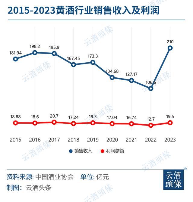 2023年,全国黄酒生产企业完成酿酒总产量190万千升,同比增长3.2%;完成销售收入210亿元,同比增长2.1%;实现利润总额19.5亿元,同比增长8.5%。