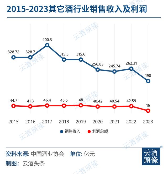 2023年,全国其他酒产量120万千升,同比增长7.2%;实现销售收入190亿元(含露酒),同比增长1.1%;实现利润16亿元,同比增长65%。