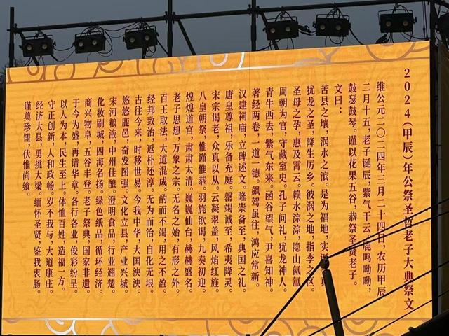 3月24日,农历二月十五,为纪念老子诞辰2595周年,第九届中国鹿邑·河南省非物质文化遗产(传统戏剧)展演开幕式暨国家级非物质文化遗产代表性项目“老子祭典”展演在老子故里鹿邑举行。