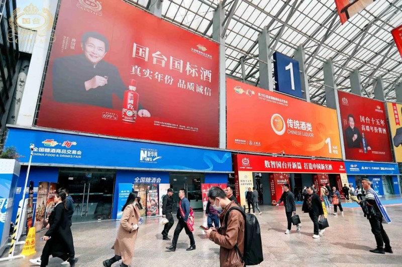 与此同时,国台也在全成都加强广告投放,除了保留日常的广告露出外,增加了在机场等糖酒会客商必经之地的广告投放,几乎实现了“客商进入春糖必有国台相伴”的品牌渗透。
