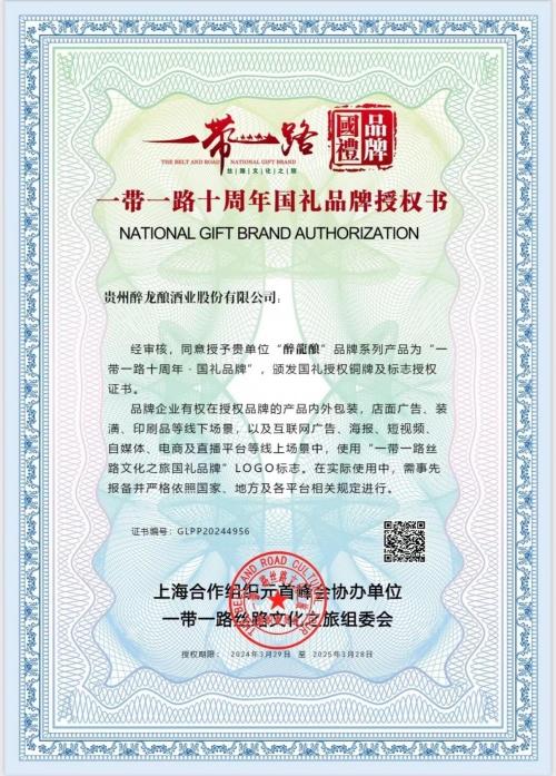 借势一带一路,醉龙酿加速中国酱香酒国际化进程 日前,酱香酒品牌醉龙酿正式获得一带一路丝路文化之旅组委会授权,成为一带一路十周年国礼品牌称号。据悉,一带一路丝路文化之旅组委