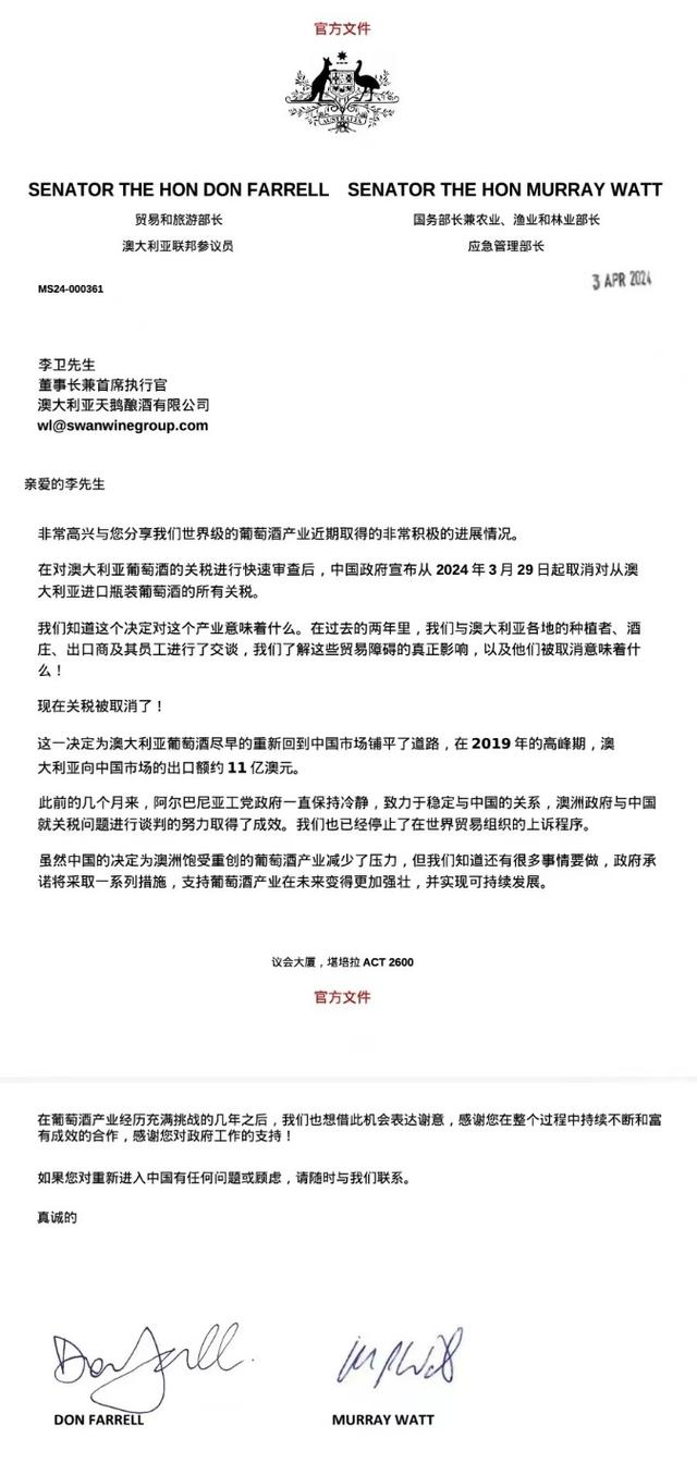 这被业内视作“澳洲酒回归”的前哨。李卫也表示,当时已有接到中国内地的订单咨询,但还没有具体成交的订单。