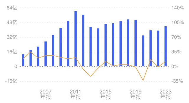 近日,张裕发布2023年度业绩报告,实现营收43.84亿元,同比增长11.89%;实现净利润5.32亿元,同比增长24.20%。过去一年,虽然张裕营收和净利润有所反弹,呈双位数增长,但整体来看,这几年张裕业绩并不乐观。