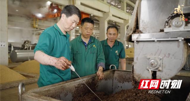 从一名上甑工到酿造车间副经理,60岁的周家国已经在武陵酒度过了39个春秋,经过多年的经验积累,他可以通过“望闻嗅捏”,掌握班组的发酵情况,准确预测产酒结果。除了传统的经验积累、技艺的传承,还有众多工艺的加持。