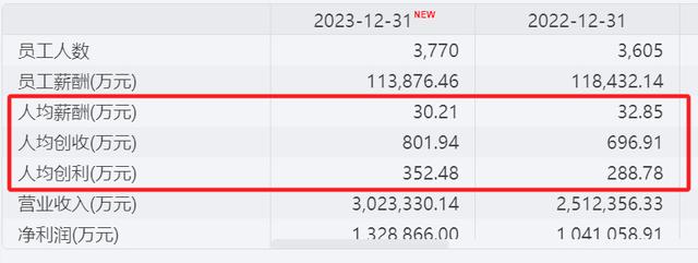 截至去年末,泸州老窖员工总数3770人,比2022年末增加约100人,人均创收802万元,人均创利351万元。该人效实际上大大超过贵州茅台的。