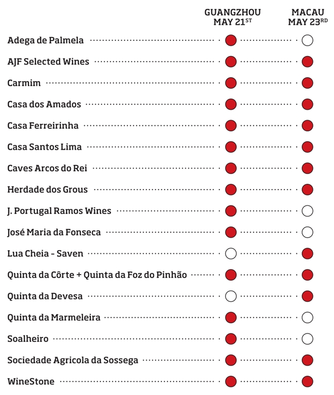 参加两场品鉴会的葡萄牙葡萄酒协会的酒商包括(不分先后):