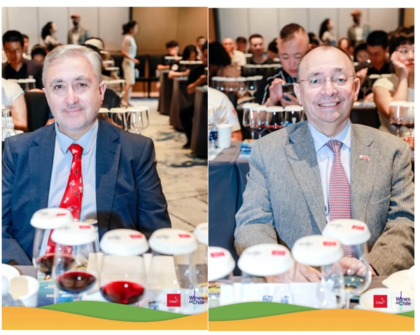 杭州站上,智利驻沪总领事Gonzalo Figueroa先生莅临致辞,与智利驻沪商务领事Alberto Cañas先生一起,在现场共同支持智利葡萄酒的推广。