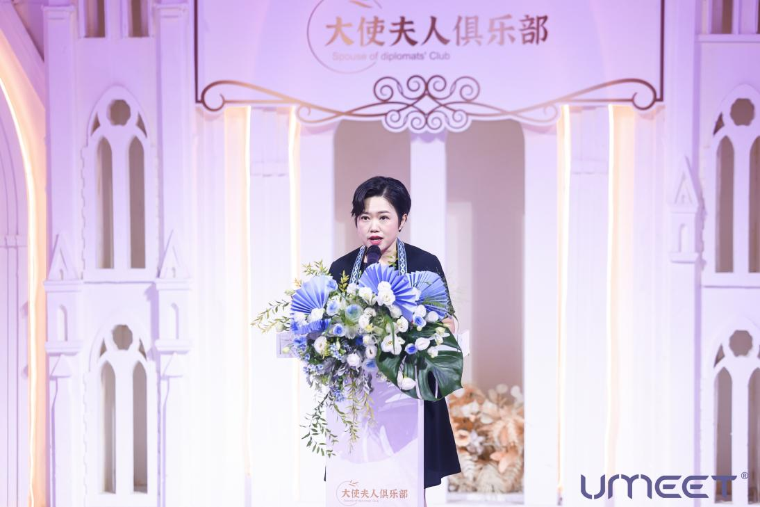 在晚宴致辞环节,贵州茅台(集团)生态农业产业发展有限公司党委副书记、总经理刘妍表示,茅台作为中华文化的名片,促进着世界人民之间的情感交融。各位驻华使节及夫人,以卓越的智慧,架起中外文化交流的桥梁。为了向菁英女性表达敬意与祝福,茅台生态农业公司精心推出UMEET蓝莓气泡酒。这款酒不仅是对愉悦生活态度的完美诠释,更是对文化交融的深情寄托。
