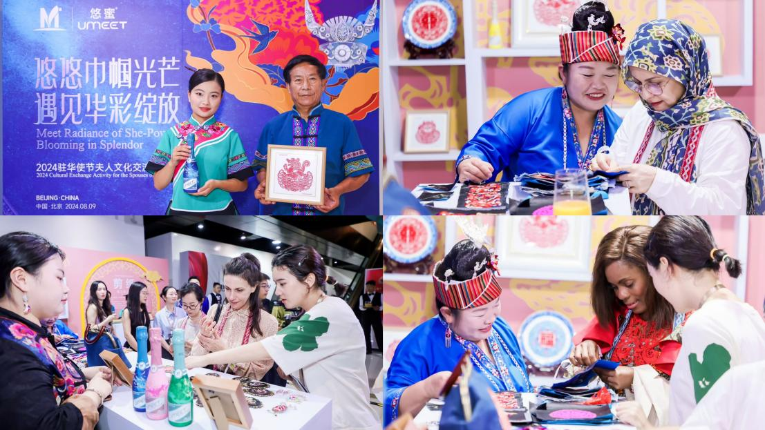 为传播好酒与文化融合的内涵故事,现场设置了苗绣匠心工坊、土家族剪纸创意展等互动体验区,让大使夫人们亲身体验到了贵州民族特色的非物质文化遗产。