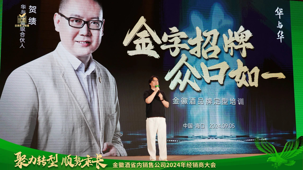 大会还邀请华与华高级合伙人贺绩,盛初咨询总经理杨大玉,华与华策略总监高明作《金字招牌,众口如一》的金徽酒品牌定型培训和《行业大趋势和企业深扎根》专题分享。贺绩、高明围绕金徽酒话语体系全面阐述了品牌全新升级要点。正能量作为金徽酒的文化内核,其定义为“践行好人文化,弘扬社会正气”。金徽酒长期致力于打造“五好公司”,即:给顾客酿好酒就是正能量,给员工好机制就是正能量,给伙伴好生意就是正能量,给社会好贡献就是正能量,给股东好回报就是正能量。杨大玉从产业发展的新逻辑、新阶段就当前及今后白酒行业发展态势,强调“企业要把事情做在趋势上,把根扎在价值里”。