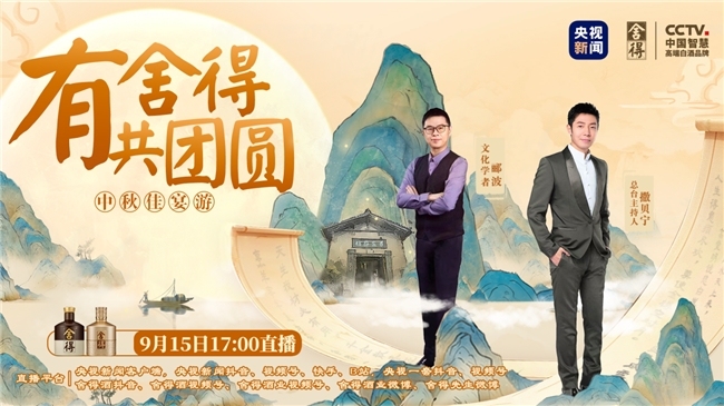 9月15日,舍得酒携手央视,与总台主持人撒贝宁、知名文化学者郦波以及植物科普博主陈奇奇开启舍得中秋奇妙游。活动以“央视直播探厂+中秋舍得佳宴”的形式,带领观众沉浸式走进舍得生态酿酒工业园,溯源舍得老酒品质。晚间,开启舍得之夜,嘉宾以诗佐酒,与来自全国的舍得酒消费者及屏幕前的万千观众共庆中秋佳节,传递美好与祝福。
