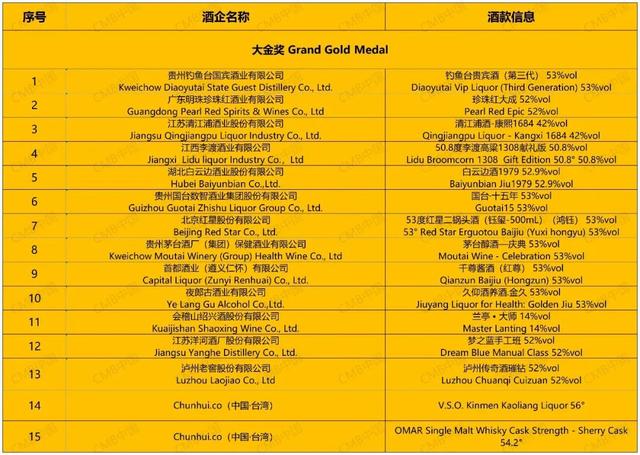 2024(贵州·仁怀)CMB国际烈性酒大奖赛中国区奖牌榜