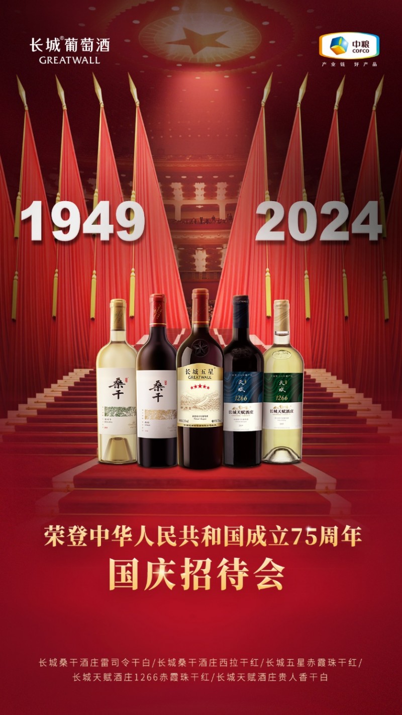 而天安门广场西侧的人民大会堂,也在27日、28日、30日接连举行了三场国庆招待会,几千名各界代表欢聚一堂,共同庆祝中华人民共和国成立75周年。在这欢庆的时节,美味菜肴,欢歌起舞,依然是不变的传统,不变的还有国宴上的常客——长城葡萄酒,再度荣耀现身款待各方来宾。