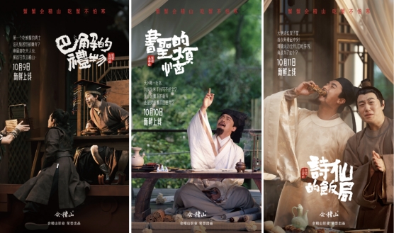 在该系列短片中,人们不仅能看到最早吃螃蟹的勇士巴解、最早的酿酒师仪狄,还能看到书法家王羲之练就“蟹爪钩”笔法之迷,诗人李白杜甫蟹宴饮酒说rap,神医张仲景穿 越搞直播……戏说解构传说,现代演绎古代,短片脑洞之大让人叹为观止,一天一集的发布节奏,更是成功挑起大众追剧热潮。