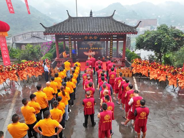 上午9点9分,贵州省仁怀市茅台镇汉朝酒业有限公司在厂区内的祭水亭举行隆重的重阳祭水大典,旨在通过重阳祭水大典活动弘扬茅台镇酱香型白酒的传统酿造文化,传承酿造工艺。