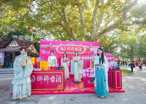 在展位的一角,设立了品鉴区。在这里,游客们不仅可以品尝到琅琊台酒的各种佳酿,还能现场体验泡菊茶煮酒的独特乐趣。让游客们在品味美酒的同时,也能深刻领略到菊花与酒交织的传统文化之韵。更为精彩的是,现场进行古韵酒礼展示表演。身着华丽的古装,穿梭在菊花与展位中,仿佛是从古代穿越而来的酒中仙子,为游客们带来了一场古色古香视觉盛宴。