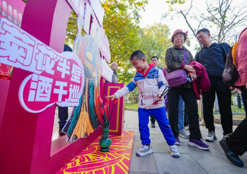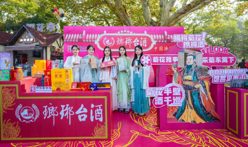 在这片菊花的海洋中,琅琊台酒也带着她的醇香与故事,盛情入驻了菊展。展位格外引人注目,不仅展示了其丰富的产品线,还巧妙地融入了一系列活动,让整个展位既显得古色古香,又不失现代气息。