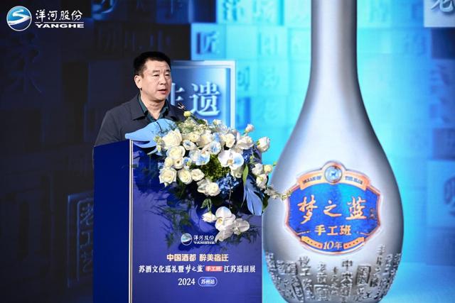 讲座现场,洋河股份党委副书记、副总裁,集团贸易董事长陈军以项羽、乾隆、费孝通、单霁翔四位历史和文化名人的故事,与大家分享了宿迁与苏州、洋河与江南之间的深情厚谊与文化交融。他表示,大运河便利的水运交通,让洋河美酒源远流长,成为“味占江南第一家”的老字号品牌。如今,洋河开创年份老酒,以“真手工、真功夫、真老酒、真年份”,掀起了中国白酒第四次革命,打造了“中国高端年份白酒”梦之蓝手工班。