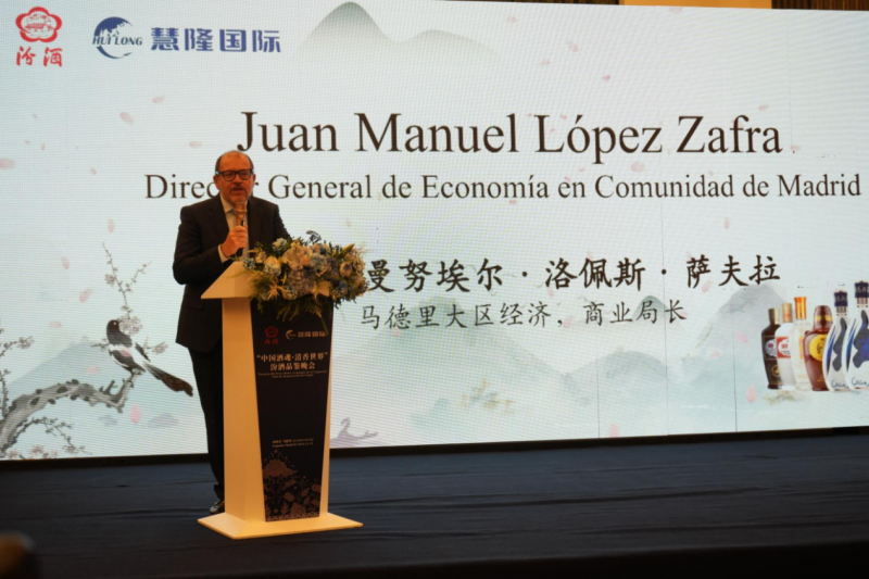 马德里大区经济及商业局长Juan Manuel López Zafra先生在致辞中表示,酒在中西方文化中都扮演着促进友谊的重要角色,汾酒在西班牙销售,将拉近民众之间的了解并加深友谊。