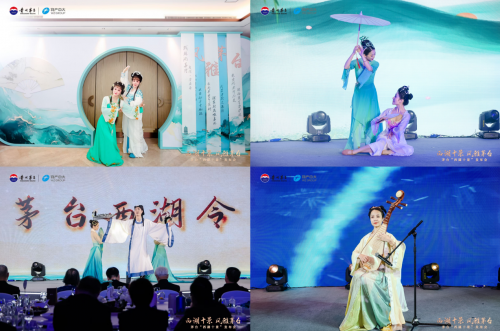 “人与天调,然后天地之美生”。活动现场,越剧演员生动演绎西湖特色文化,在水墨与诗意的华彩中渲染开这一场茅台与西湖十景跨越千年的邂逅。