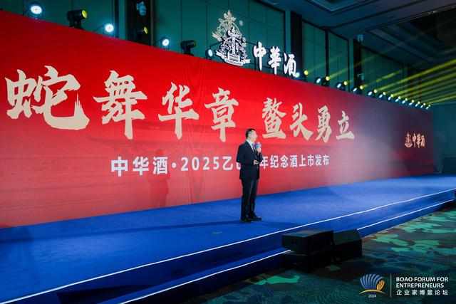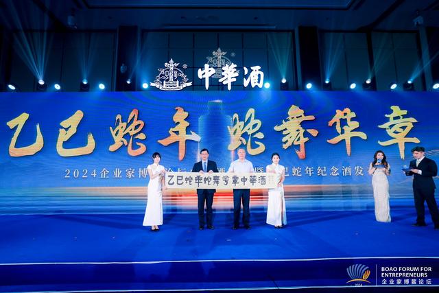 中华酒作为2024中国企业家博鳌论坛合作用酒,积极发挥合作伙伴力量,深入参与论坛相关系列活动,共谋发展新篇。12月2日晚,中华酒在东屿岛大酒店隆重举办以“乙巳蛇年 蛇舞华章”为主题的中华酒之夜暨乙巳蛇年纪念酒发布活动,三百多位知名企业家、专家学者、文化名人共聚一堂,在这场融合了商业智慧与文化品位的盛宴中,共同见证了中华酒(乙巳蛇年纪念酒)的重磅亮相。