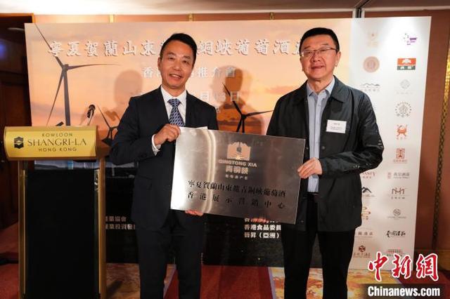 活动现场为宁夏贺兰山东麓青铜峡葡萄酒香港展示营销中心授牌。 青铜峡市葡萄酒产业发展服务中心供图