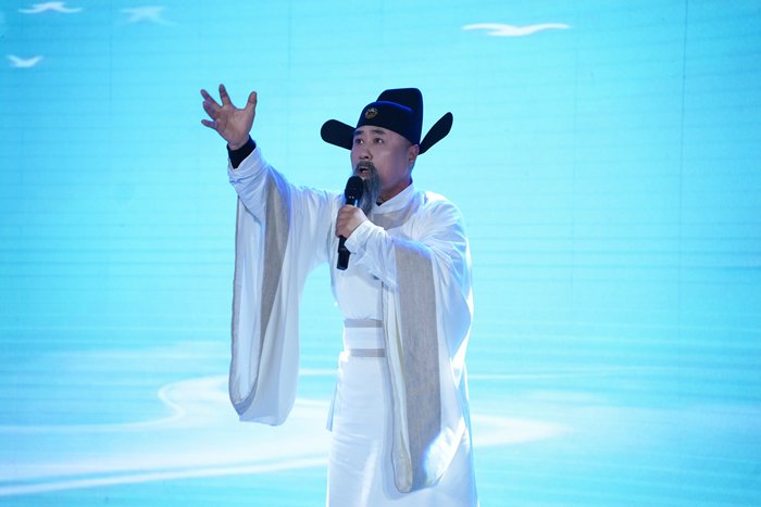 国家一级演员、原湖南省武警文工团团长刘俊生带来诗歌朗诵《将进酒》,奔涌迸发如江河流泻般的气势打动了无数人,再现盛唐风华,完美接驳当下的盛世荣耀。