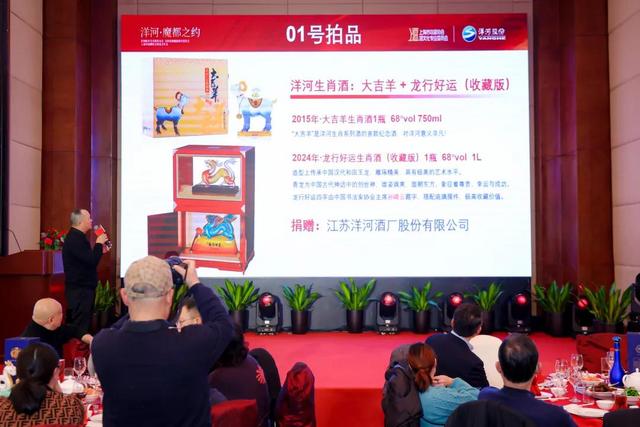拍卖环节,气氛热烈,洋河大吉羊+龙行好运(收藏版)等老酒被超高价值拍出。