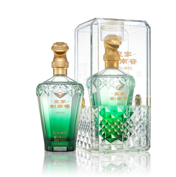 随着乙巳蛇年的到来,剑南春再为消费者准备一份厚礼,推出皇家剑南春·乙巳瑞蛇。产品定位高端,建议零售价2888元/瓶,全渠道限量发售12000瓶,规格为888ml,寓意财运亨通,生活富足。