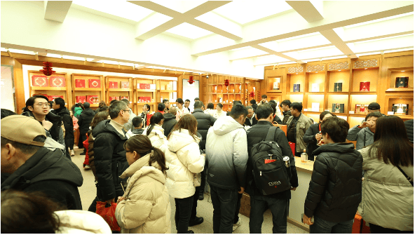 蛇年春节期间,五粮液专卖店内“供销两旺”的类似场景也发生在北京、上海、深圳、台州、新乡等城市。在全国900余家五粮液专卖店,超过两千名员工坚守岗位,为首个“非遗版”春节献上和美祝福。