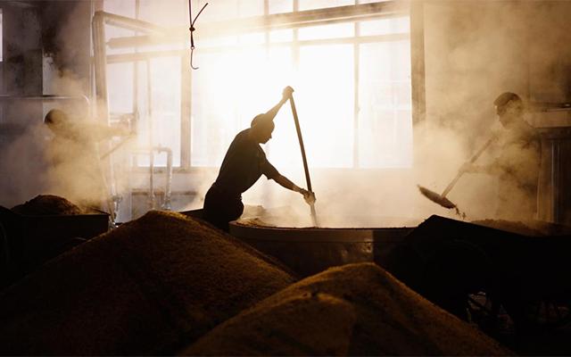 窖池中的酒醅已历经寒暑轮回,在石窖里完成了一个月的"蜕变之旅"。“酒醅很滋润,醅中还有很多整粒粮食,大回酒有保证。”有经验的武陵酒匠人们举起酒醅就近“闻一闻”就可以胸有成竹,里面充满酒香又带着粮香、果香和武陵酒独特的发酵香。“这会儿的酒醅最好闻,我们一年中最期盼的就是这个时候。”