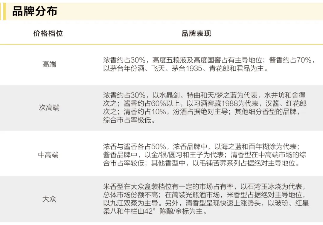 •品牌忠诚度高:茅台、五粮液等全国性品牌在高端市场占据主导地位,本地品牌在中低端市场仍有稳定需求。