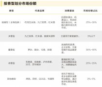 从品类分布来看,佛山酒类市场上,浓香型酒第一阵营为五粮液,第二阵营为洋河、泸州老窖、剑南春,第三阵营为水井坊、舍得、古井、百年糊涂。各品牌市场占比相对稳定,内部呈现出品牌替代性增长特征。