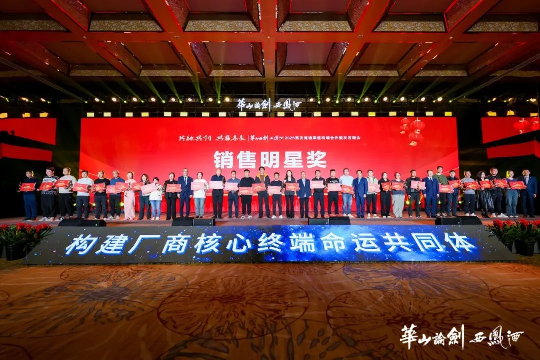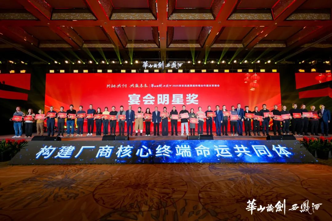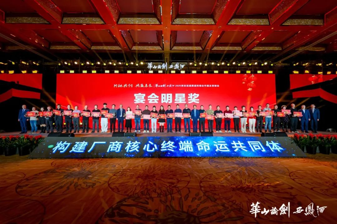 大会现场对华山论剑西凤酒2024年度西安流通渠道市区终端宴会明星奖和销售明星奖进行表彰奖励。