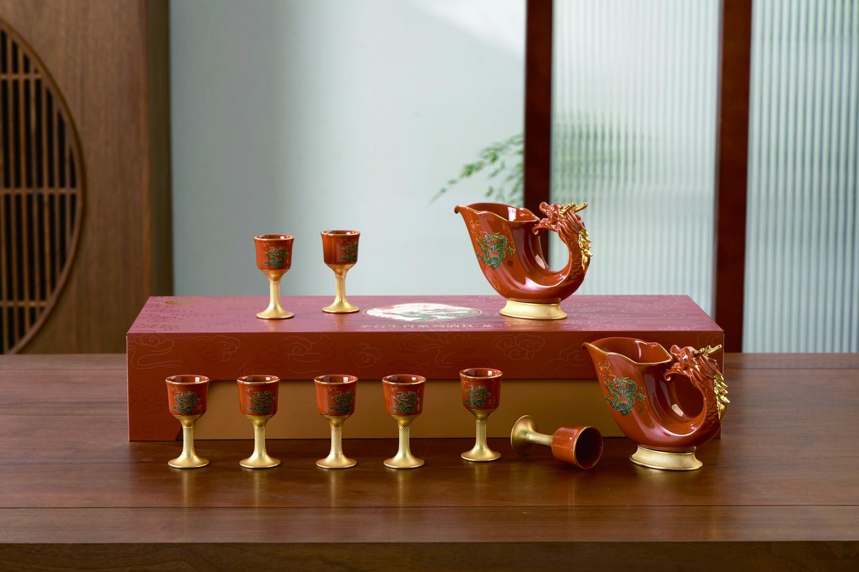 善于“跨界”的茅台文化旅游公司,2024年携手深圳市国瓷永丰源瓷业有限公司,将茅台生肖文化、陶瓷工艺巧妙融合,共同推出了茅台生肖系列酒具。