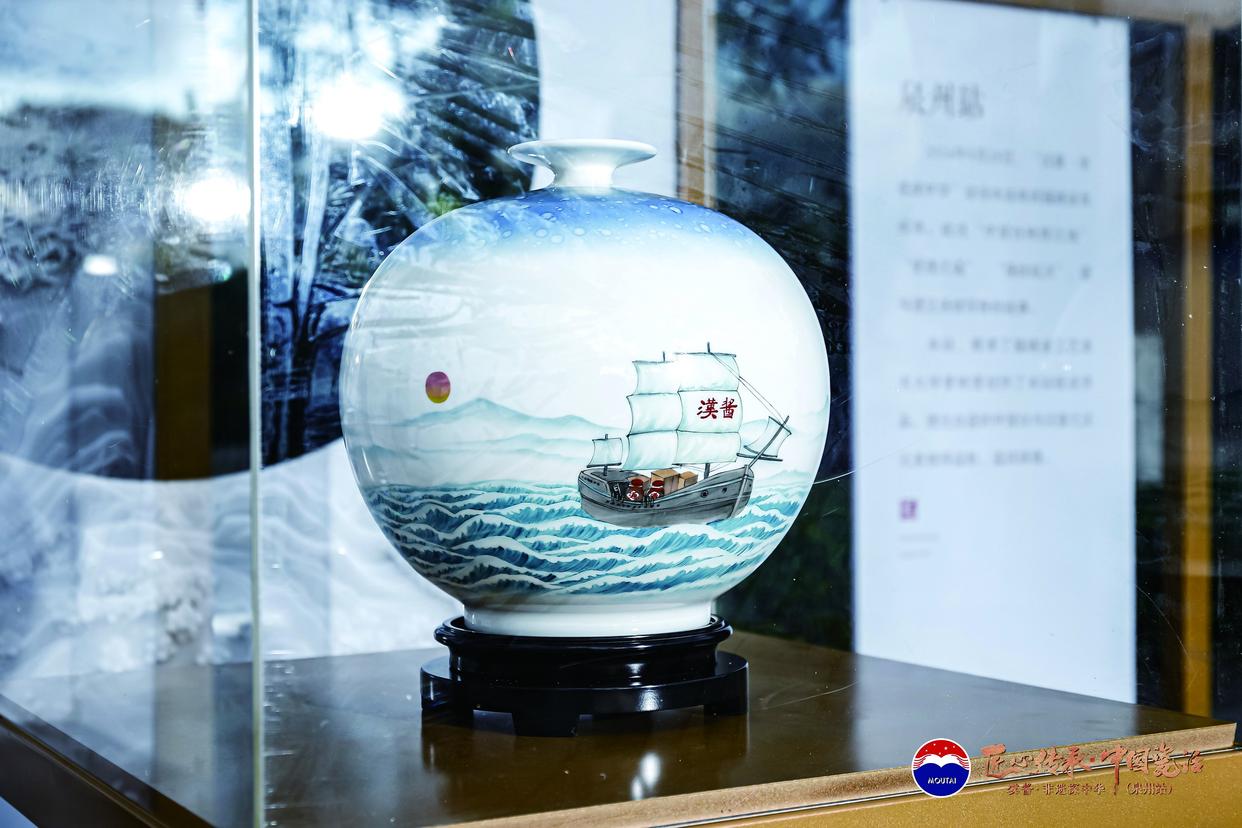 在景德镇创作联名作品“匠心传承”梅瓶,于平顶山创作了“似玉非玉胜似玉”的天青色汉酱酒瓶,在潮州创作了“匠心传承”瓷板画,在泉州则创作了德化白瓷的中国白与汉酱融合的瓶型……