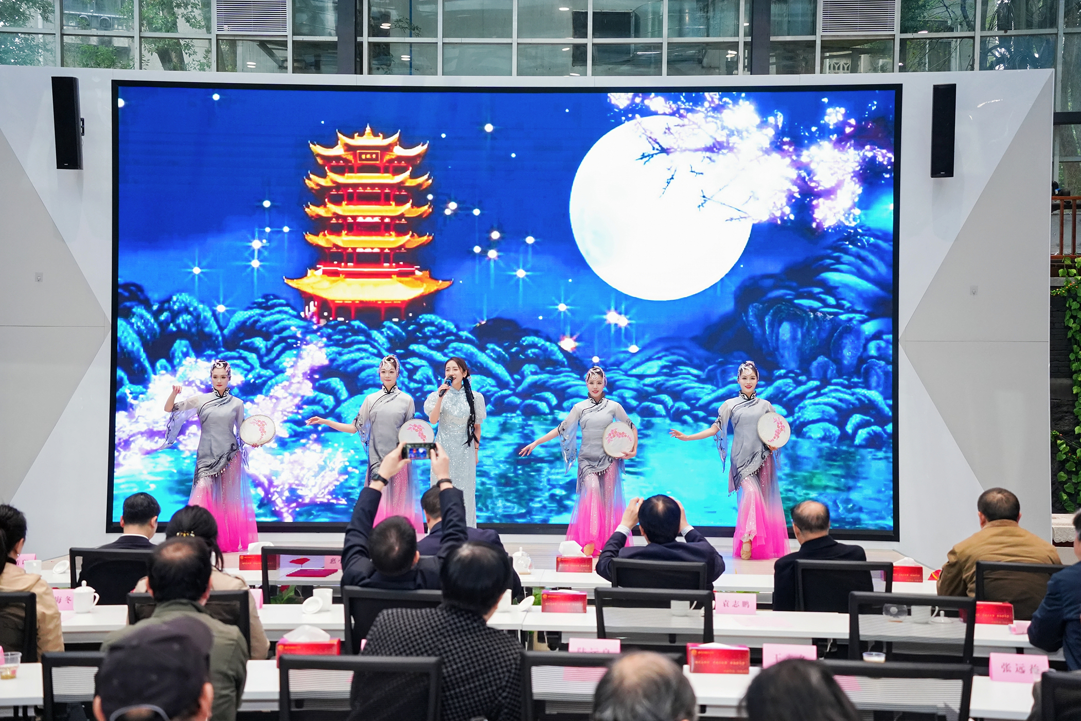 活动最后,歌舞《黄鹤楼》以悠扬的旋律为本次大会画上圆满句号。黄鹤楼,一座楼,一首诗,一杯酒,一段历史,一种文化。今天,诗酒黄鹤楼焕发出新的生机,传承与创新中华文化。