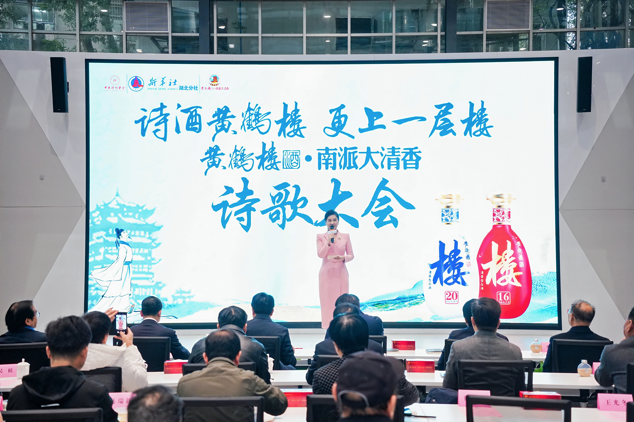 “天下江山第一楼”黄鹤楼,承载着千年的历史与诗意。从崔颢笔下“昔人已乘黄鹤去”的千古绝唱,到李白“黄鹤楼中吹玉笛”的悠远意境。千百年来,无数文人墨客以诗会友,留下了众多关于黄鹤楼的传世佳作。3月14日,“诗酒黄鹤楼 更上一层楼——‘黄鹤楼酒·南派大清香杯’诗歌大会”在新华社湖北分社中直党建5G融合传播实验室成功举办,现场为全国诗歌征集活动金奖、银奖、铜奖获得者颁奖,展示《诗酒黄鹤楼》专题邮票册,开展诗酒文化对话。