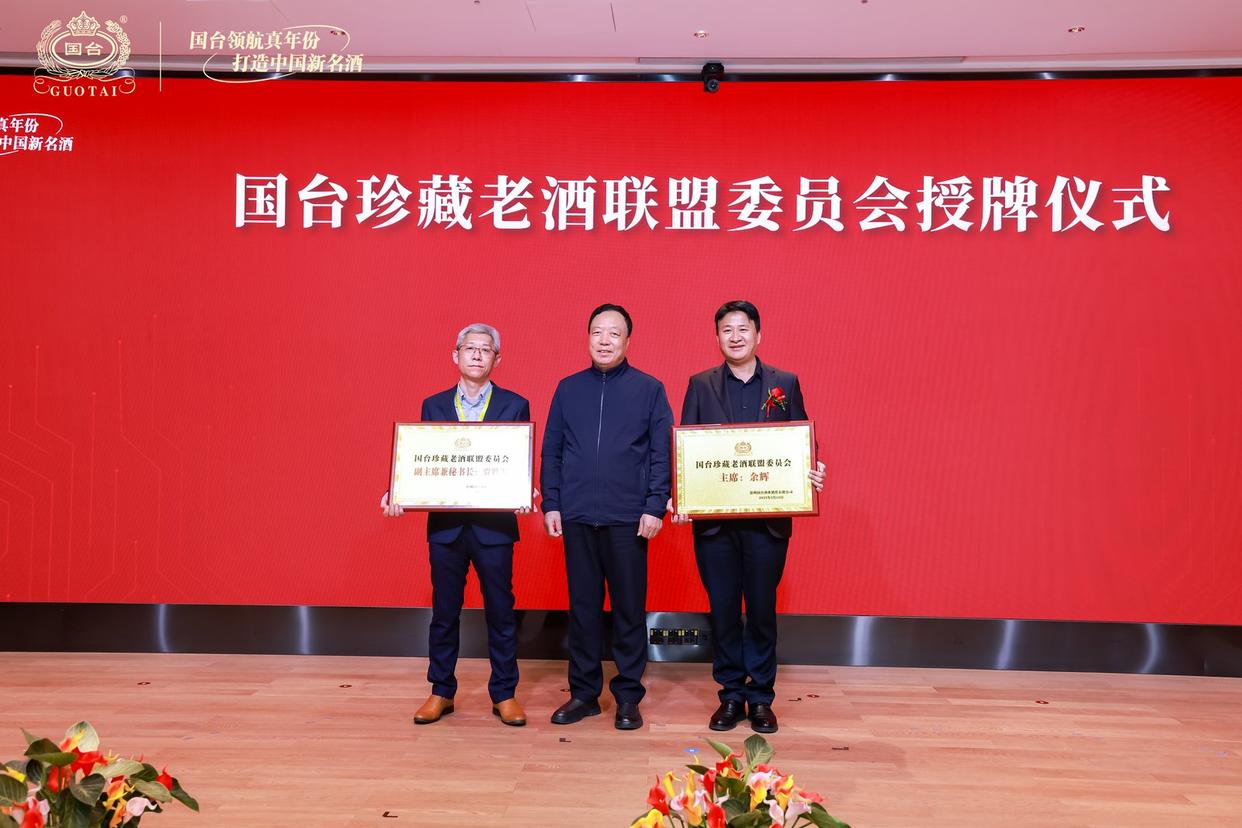 活动当天,天士力创始人、国台数智酒业集团荣誉董事长、创新生产力总师闫希军分别为国台珍藏老酒联盟委员会主席余辉和国台珍藏老酒联盟委员会副主席兼秘书长贾胜军授牌。