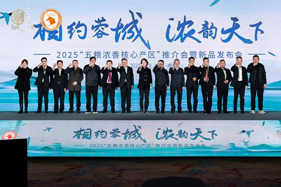 3月20日下午,正值第112届全国糖酒商品交易会举办之际,“相约蓉城 浓韵天下” 2025 “五粮浓香核心产区”推介会暨新品发布会在成都世外桃源酒店隆重举行。