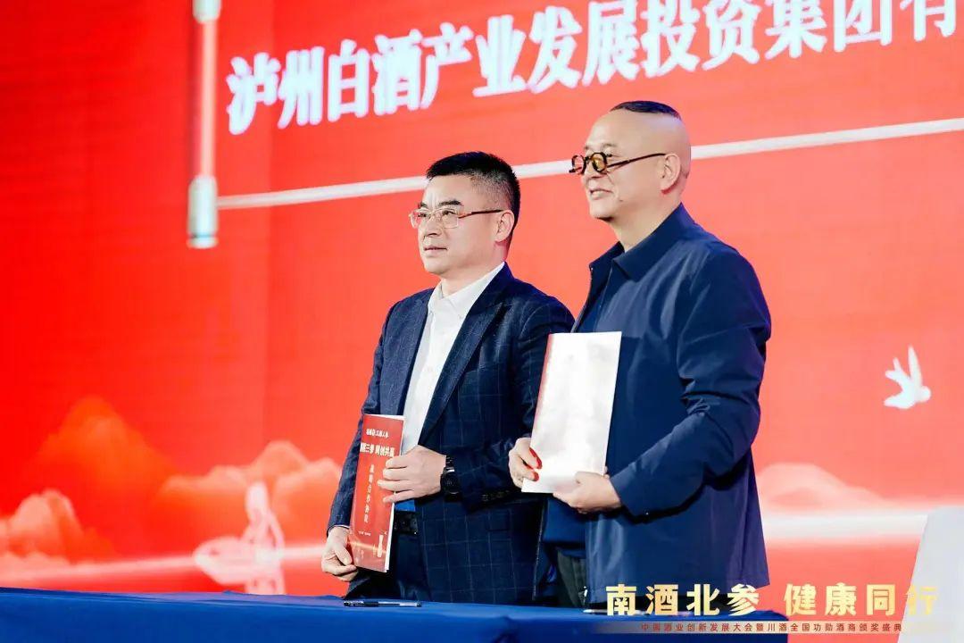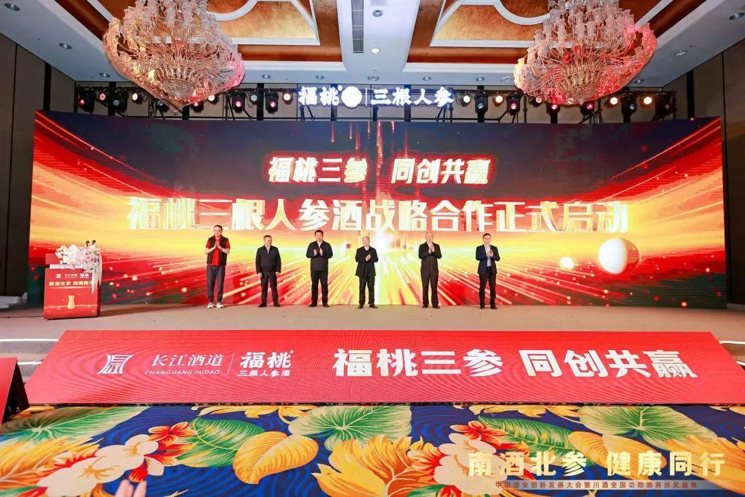 随后在中共四川省委四川省人民政府决策咨询委员会副主任、成都市社科联主席、四川省酒类流通协会名誉会长李后强吉林省参茸办主任张志财吉林省白山市副市长栾国华泸州市人大常委会副主任张季頫泸州白酒产业园区党工委副书记、管委会主任罗了威泸州白酒产业发展投资集团有限公司党委书记、董事长刘斌以及福桃集团董事长杨珂的共同见证下福桃集团、福桃参业集团、福桃酒业分别与吉林省白山市抚松县政府、泸州白酒产业发展投资集团有限公司、广东粤强实业集团有限公司签订了战略合作协议共同致力于人参及人参酒产业的发展。