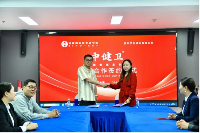 2025年3月25日,诺赛国际医学研究院、北京中健卫生物集团与贵州济仙酒业有限公司的签约仪式在中国·贵州茅台镇隆重举行。签约仪式现场气氛庄重而热烈。诺赛国际医学研究院院长赵崇文、北京中健卫生物集团董事长毕伟庚、贵州济仙酒业总经理陈显敏及销售总监吴庆敏等共同出席。赵崇文院长表示:“此次合作是医学健康与传统白酒产业的创新融合,我们将以科研赋能产品,重新定义健康饮酒标准。”陈显敏总经理强调,济仙酒业将充分发挥产区与工艺优势,确保产品品质与市场竞争力。