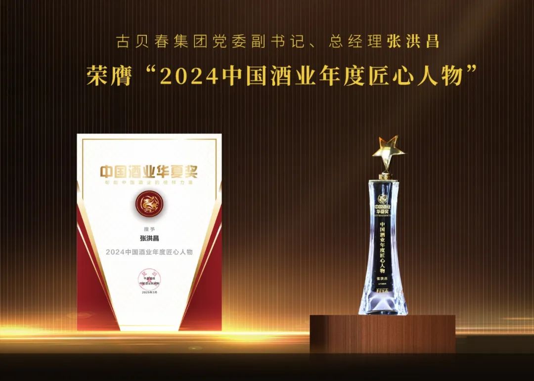 颁奖典礼上,古贝春集团有限公司党委副书记、总经理张洪昌,荣膺“2024中国酒业年度匠心人物”,张洪昌总经理在2024年中国酒业发展中留下了浓墨重彩的时刻记忆,赢得了业界同仁的广泛认可和尊重,这份荣耀当之无愧。