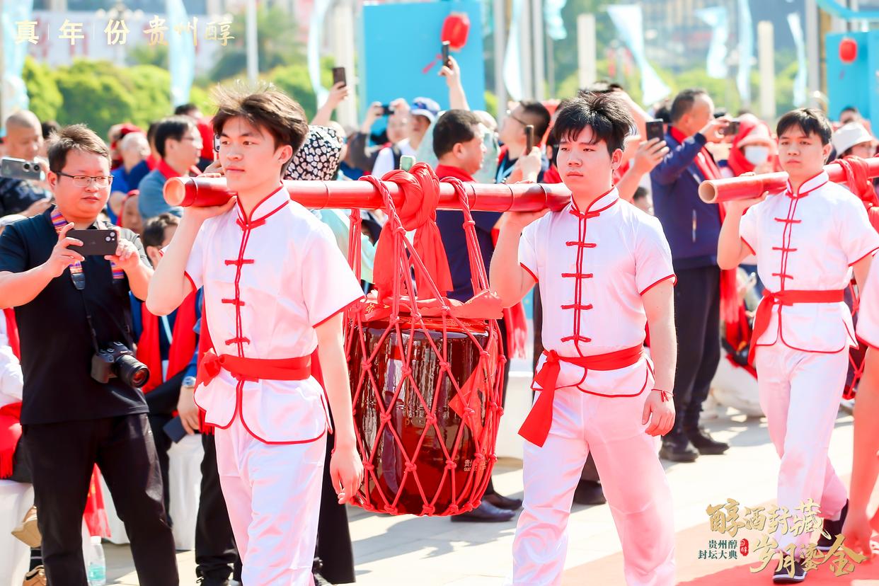 封坛的匠心不仅流淌于工艺流程,更融入了对人文血脉的深情凝视。在这次封坛大典中,浑厚的鼓声和少数民族银饰品碰撞声相映成趣,化作流动酒窖的舞台上演着酿酒人的传奇故事……这些非遗文化的有机融合,让每一坛酒都成为黔西南山水人文的液态图腾。