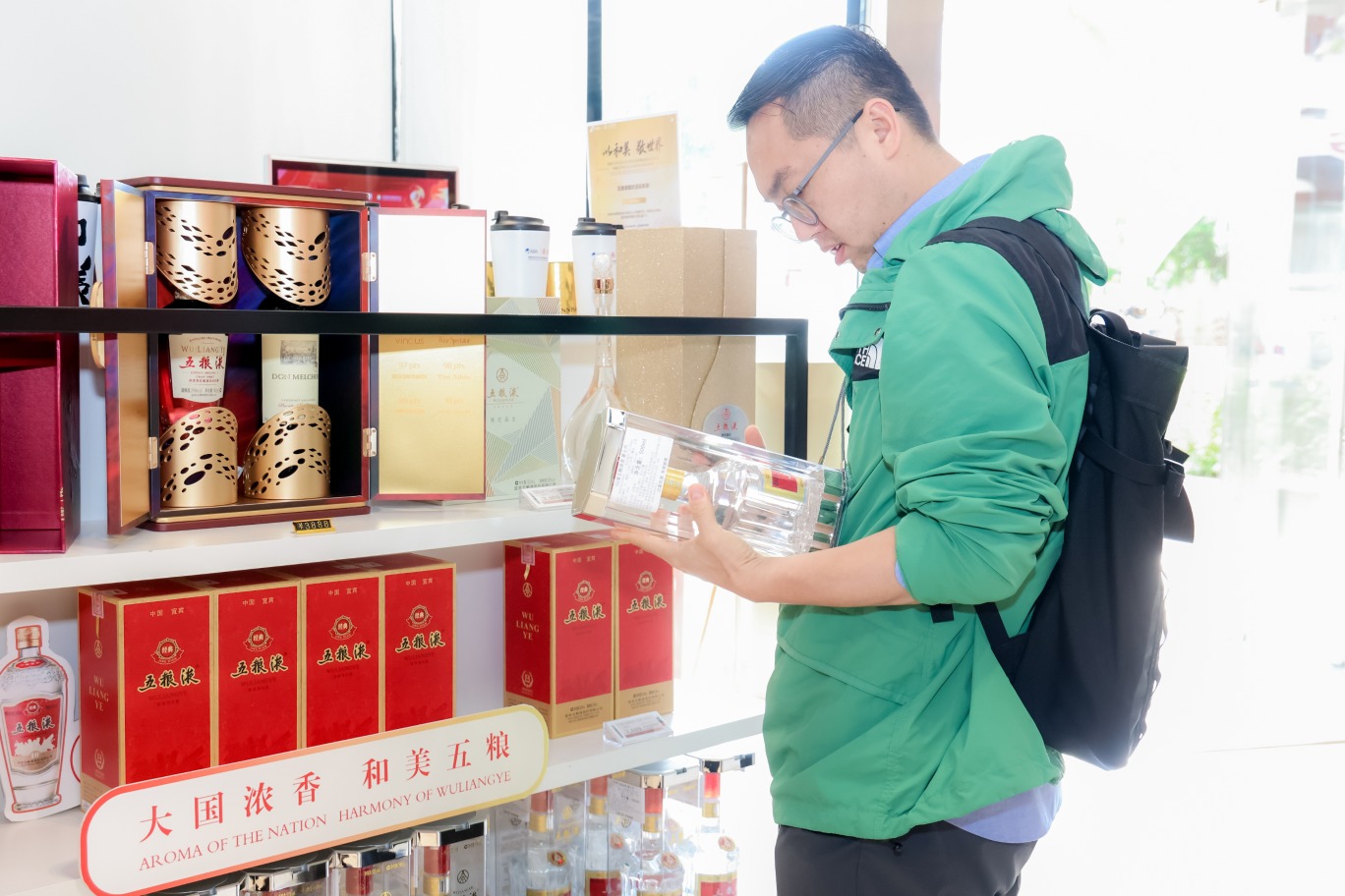 在五粮液专卖店门前精心设置的互动区,书法家以扇为纸,为全球来宾写下对“和美”的感受。在五粮液展厅,嘉宾们以和美卡片“丈量”五粮液产品,留下一个个富有创意的和美瞬间。在博鳌免税店的五粮液品牌体验专区,以五粮液为基酒精心调制的“五谷罗尼”以及“唐·重碧酒”“宋·姚子雪曲”“元·琥珀浓”“明·叙州露”五款特色鸡尾酒缤纷亮相,吸引中外嘉宾驻足品尝。