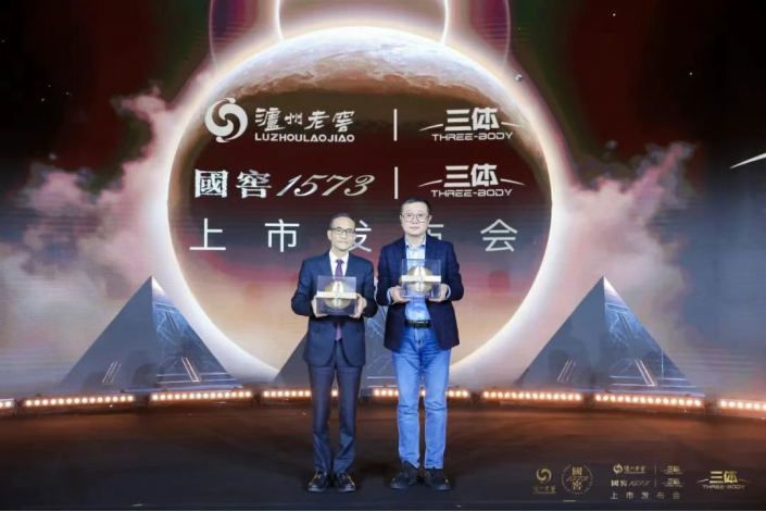 本次发布仪式还邀请何诚和科幻作家刘慈欣为“国窖1573|三体”001号和002号签名,一瓶赠送北京元宇科幻未来技术研究院收藏,一瓶赠送泸州老窖博物馆收藏。最后,何诚与刘慈欣共同为“泸州老窖|三体”“国窖1573|三体”点亮全球上市的星图。据悉,两款联名酒首批产品将于近期登陆全国指定渠道。