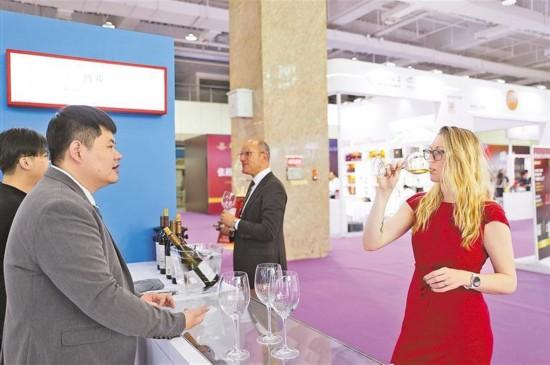 ③ 外国嘉宾在展会现场品鉴葡萄酒。