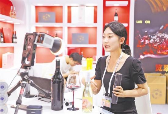 ② 参展商现场直播推介贺兰山东麓葡萄酒。