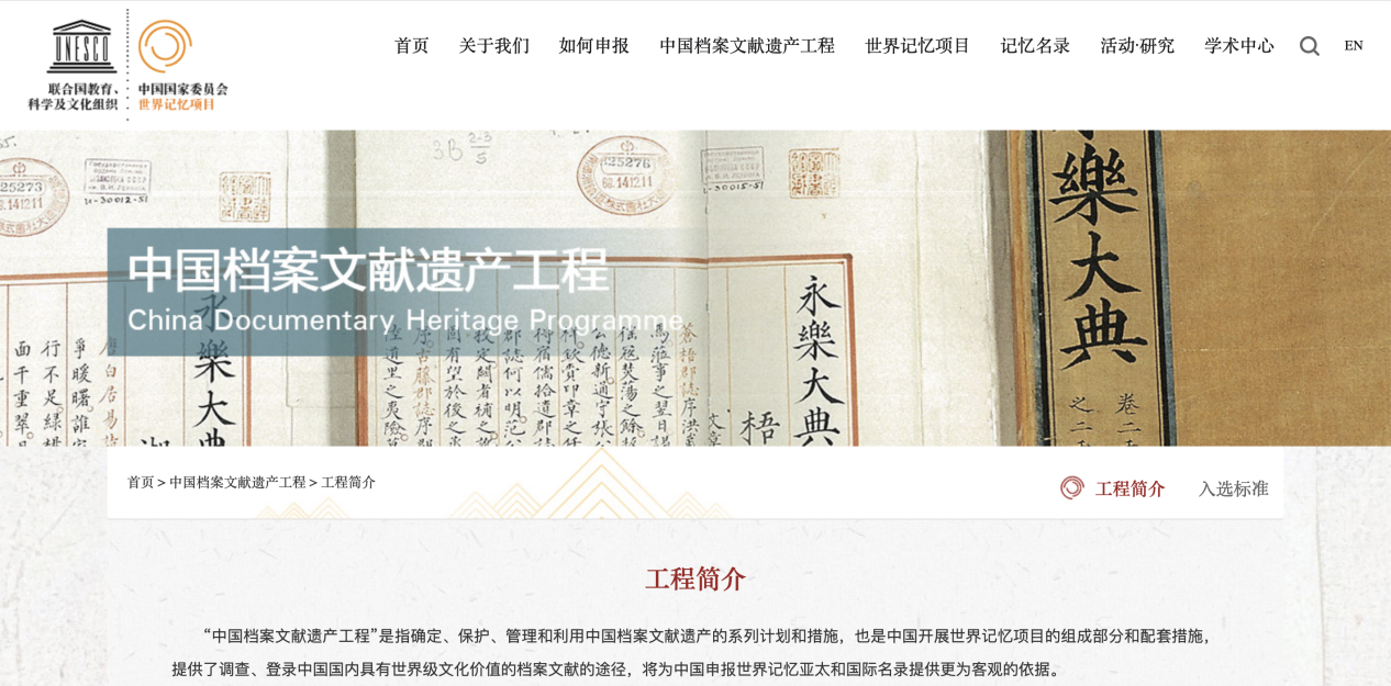 联合国教科文组织于1992年启动世界记忆项目,其入选名录——《世界记忆名录》是与《世界遗产名录》《世界非物质文化遗产名录》并立的三大世界级遗产类名录,旨在唤起世界各地对文献遗产重要性的认识。《中国档案文献遗产名录》作为中国国家级名录,由世界记忆项目中国国家委员会组织评选,旨在收录具有世界级文化价值及国家意义的文献遗产,为中国申报《世界记忆名录》提供依据。中国的积极参与,不仅为《世界记忆名录》提供了坚实的资源储备,也提高了公众对我国档案和档案工作的了解,进一步推动中国档案文献遗产与全人类共享,丰富世界文化多样性。