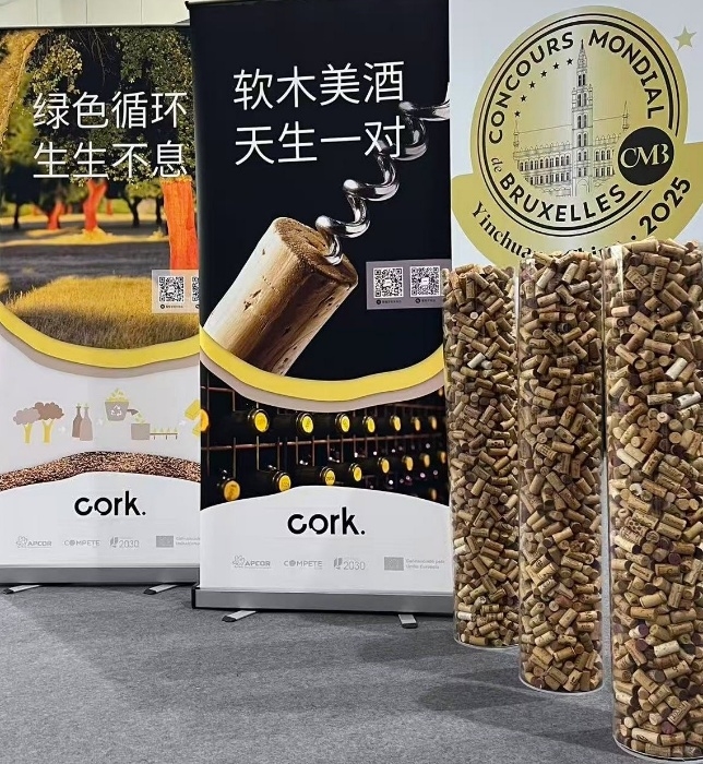 为提高公众对软木塞独特优点的理解,尤为其环保特性的优势,葡萄牙软木协会(APCOR)在同期举办的葡萄酒博览会上设立了兼具视觉展示与知识科普于一体的特色展台,并迅速成为展会的热门打卡点之一,吸引了大量观众前来互动交流,了解软木在葡萄酒品质保存与绿色环保实践中的关键作用。